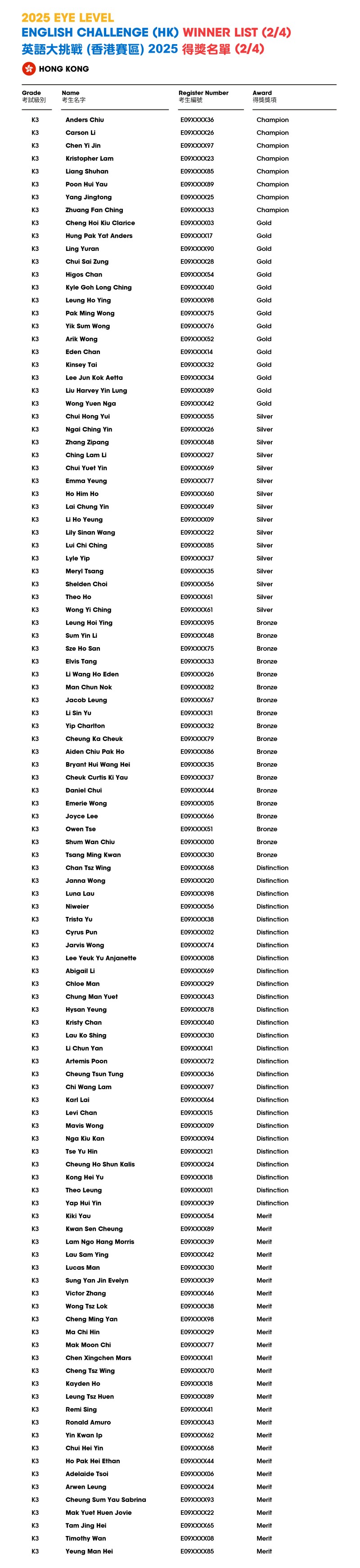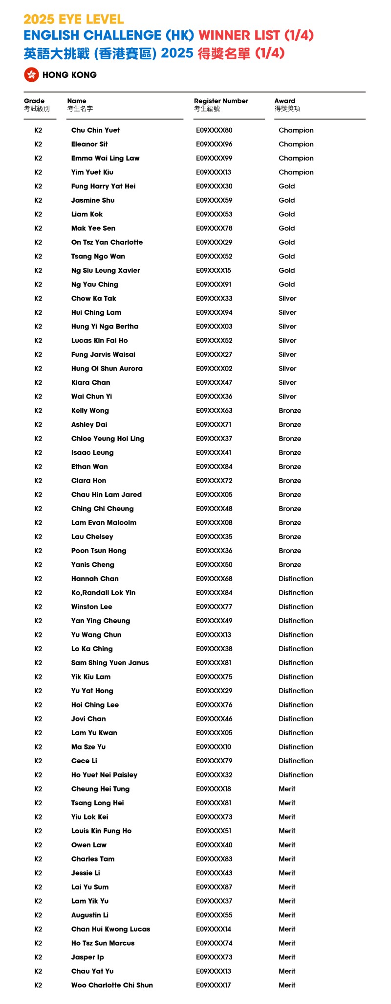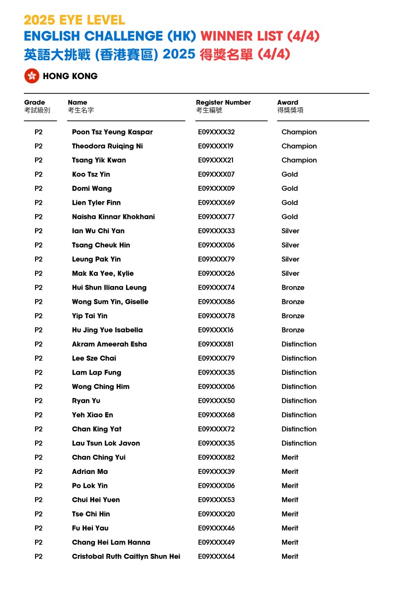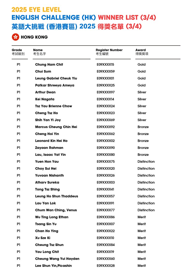 Eye Level English Challenge 2025 - Result Announcement (HK)