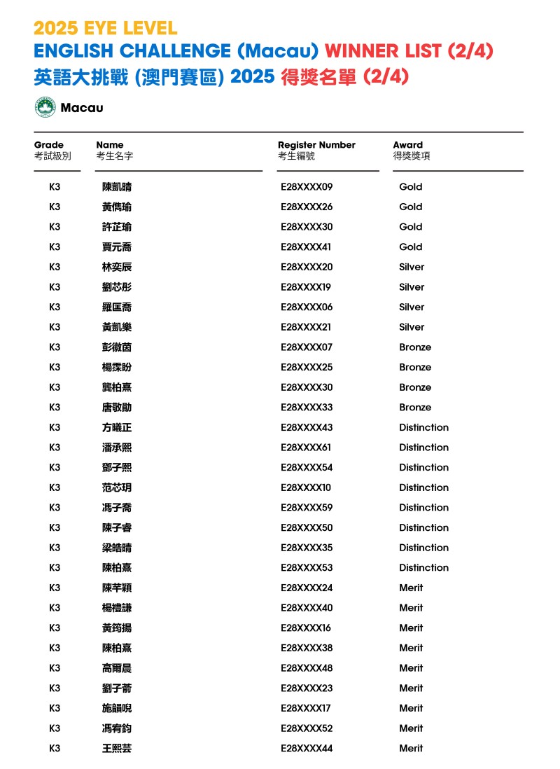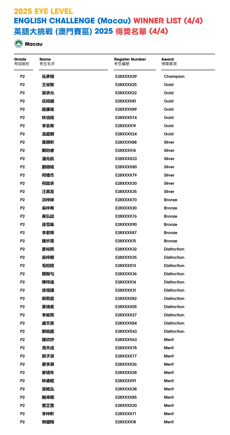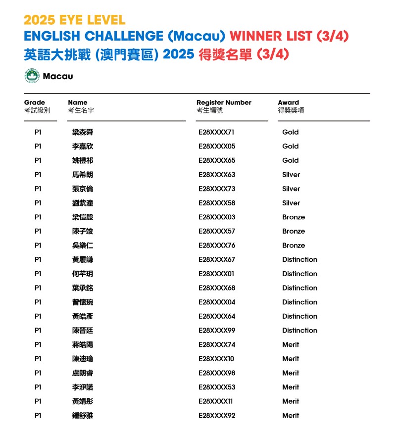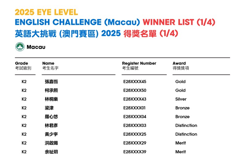 Eye Level English Challenge 2025 - Result Announcement (Macau)